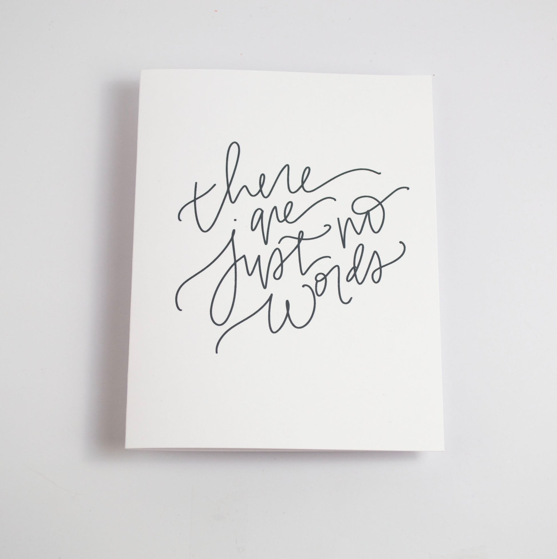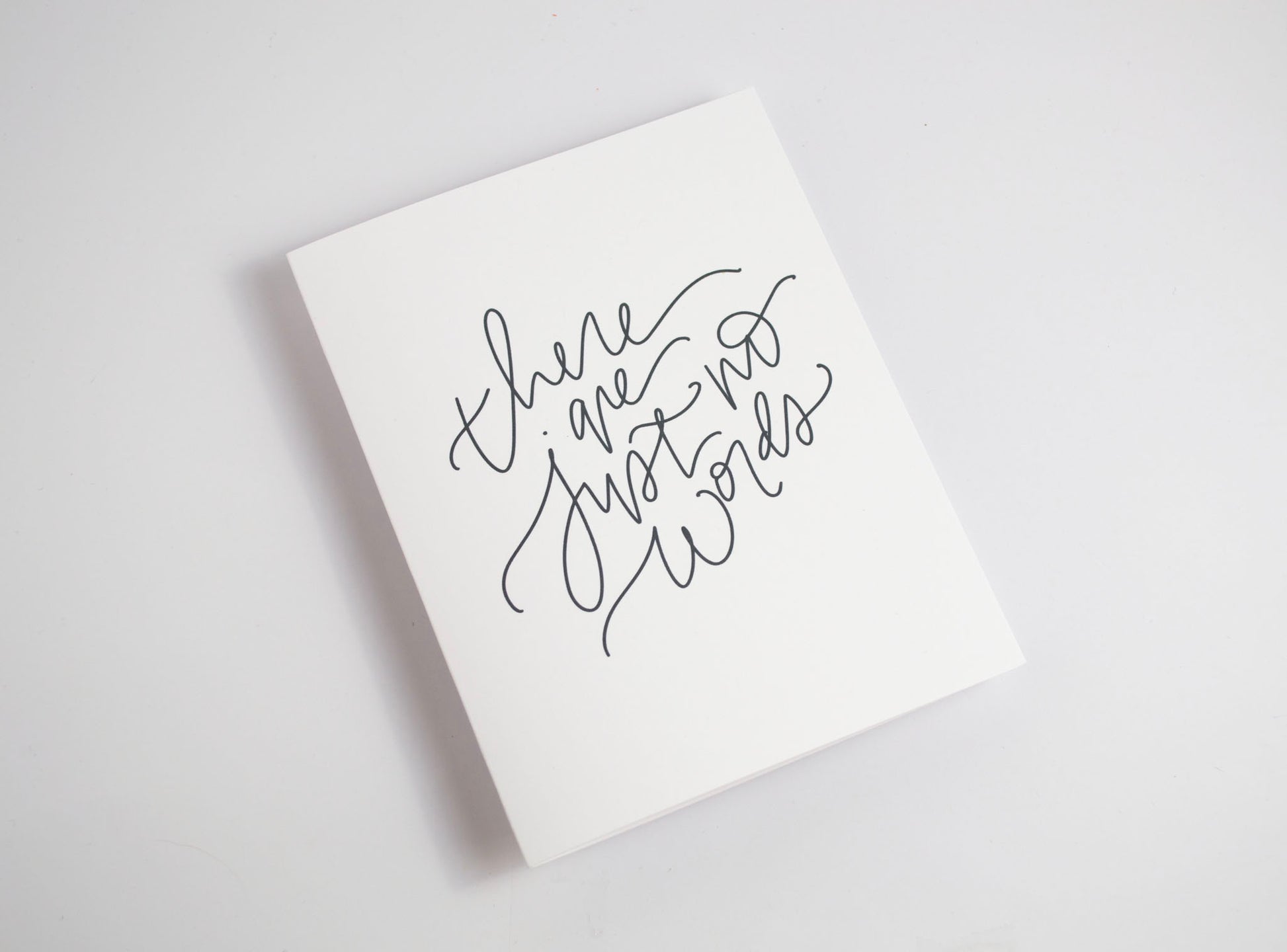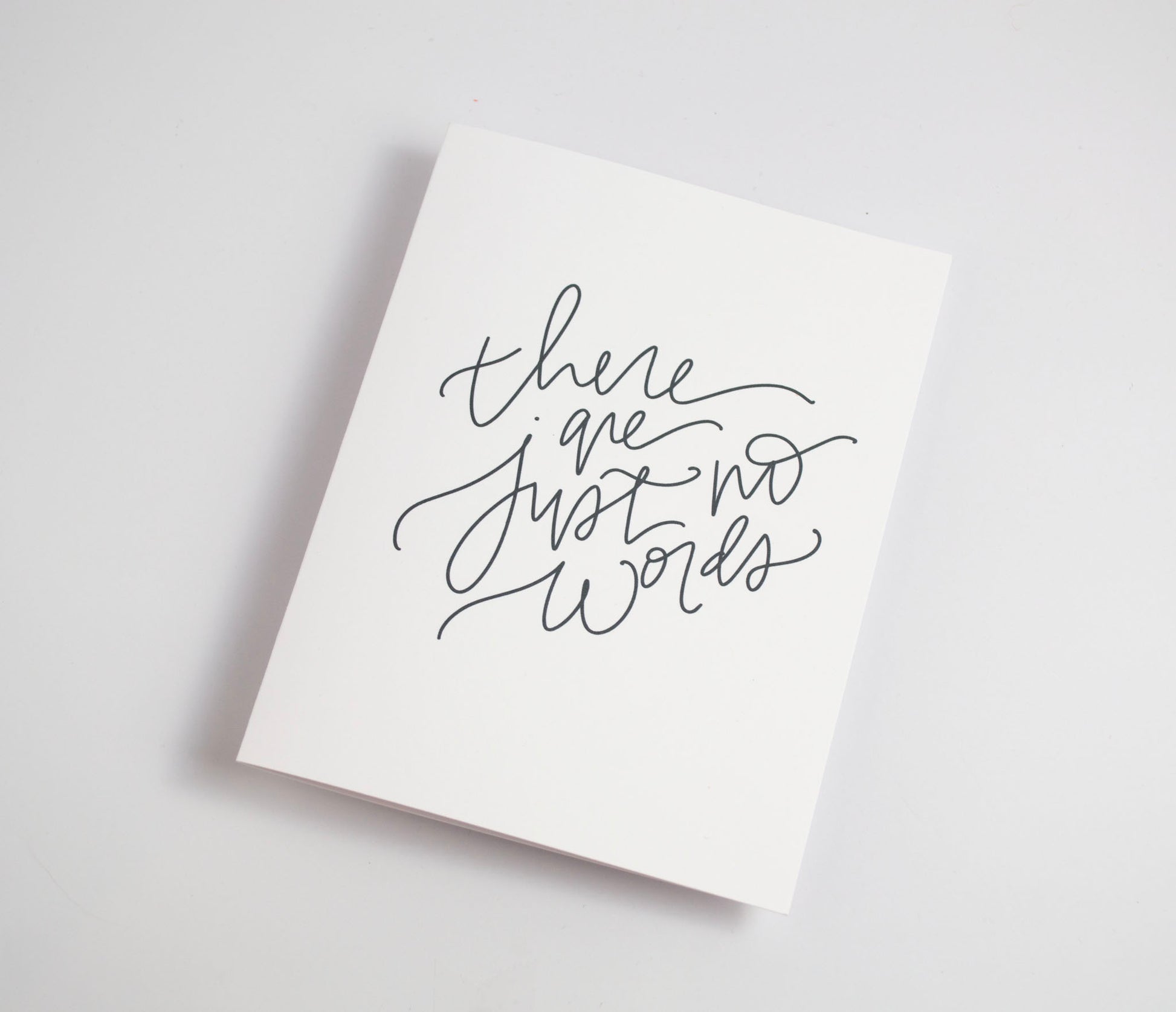 This item is a hand lettered greeting card in my signature woven lettered style. The front of the card reads "there are just no words" in bold, black ink atop a white background. The inside of the card is blank for you to write your own heartfelt message. This card is printed on thick, smooth 110 lb card stock that feels both sturdy and luxurious in your hands.